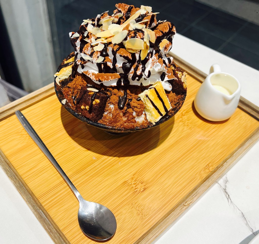 You can choose variety of flavours that they have including; Mango Cheesecake Bingsu, Strawberry Cheesecake Bingsu, Honey dew cheesecake Bingsu, Orea Cheesecake Bingsu, Chocolate Bingsu, Green tea Cheesecake Bingsu, Black sesame Bingsu, Cheesecake Bingsu, and Brownie Cheesecake Bingsu.
